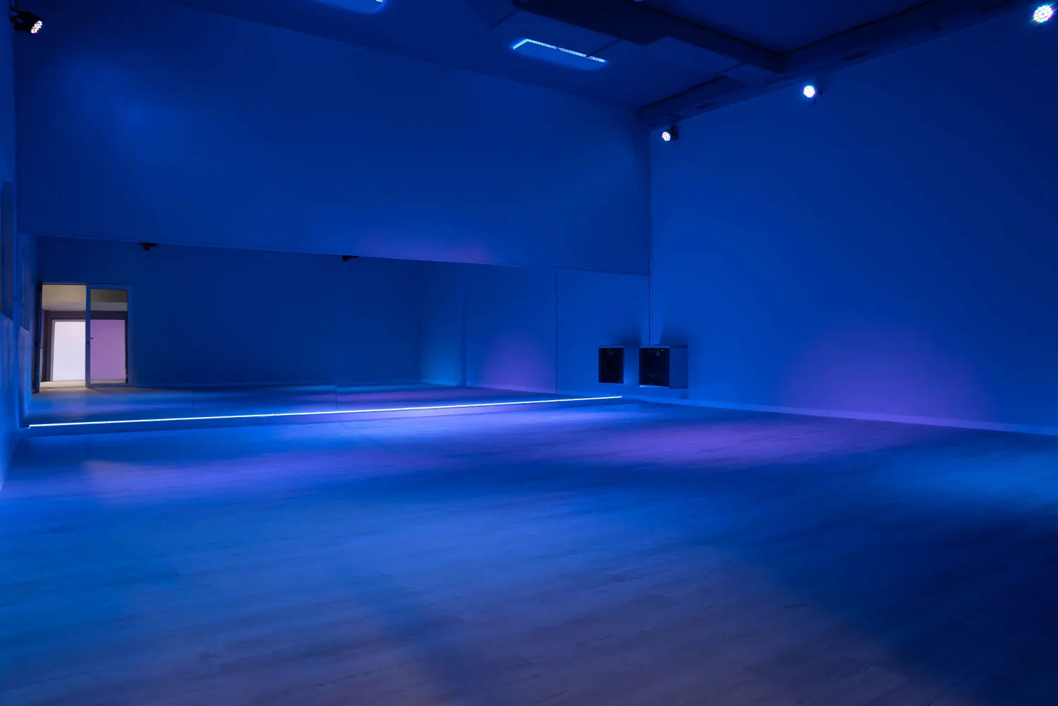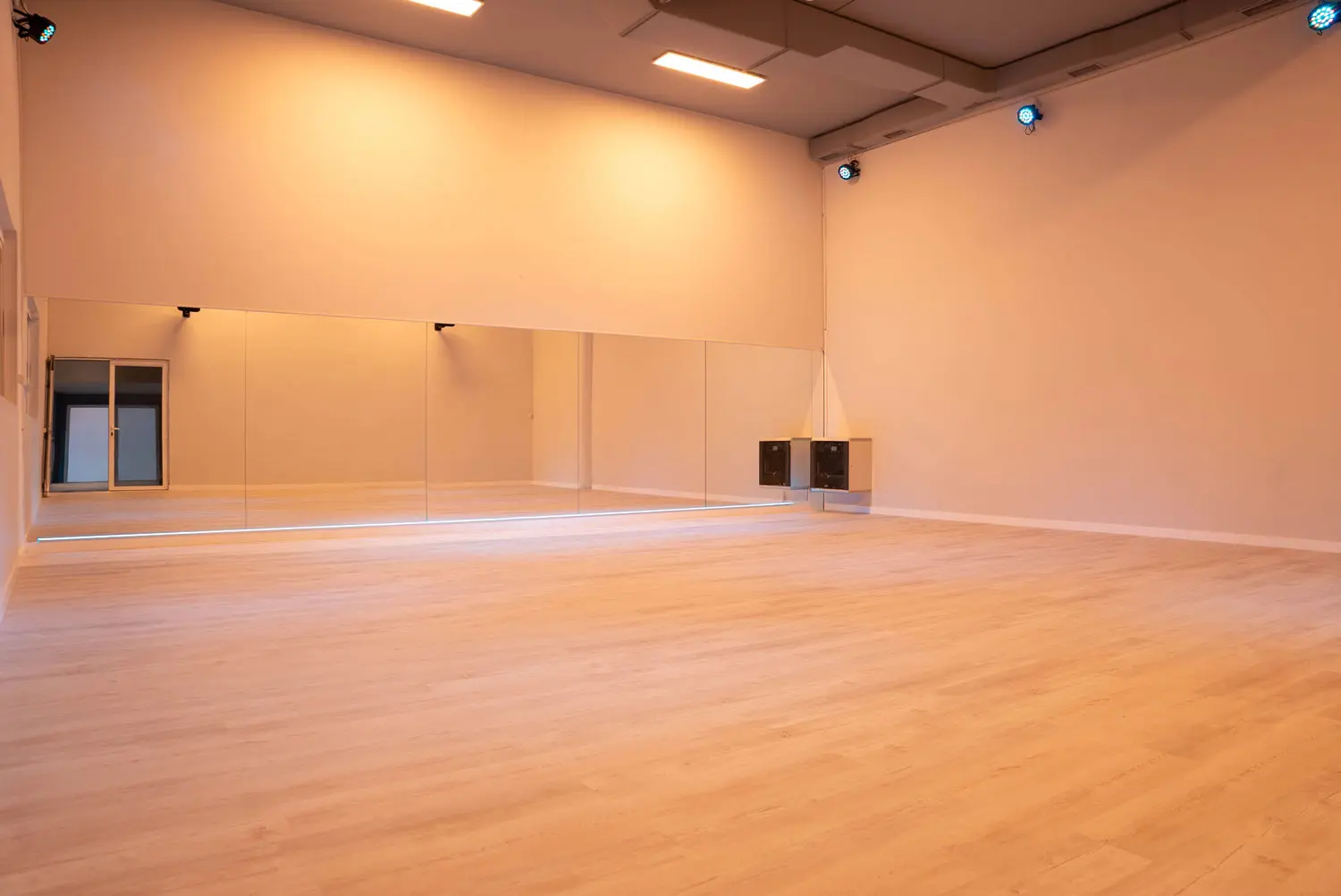 68 m² y 4,5 m de altura para puro movimiento para ensayar sin sentir paredes encima.